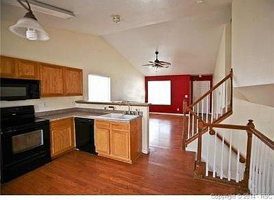 Popular tri-level floor plan with convenient location near military bases, attached 2 car garage and a great room concept. You are greeted with a covered front porch and enter into the great room with vaulted ceilings, counter bar in the kitchen and a walk-out to the deck. Just steps away is the spacious family room. Upstairs are two generously sized bedrooms and a full bath.