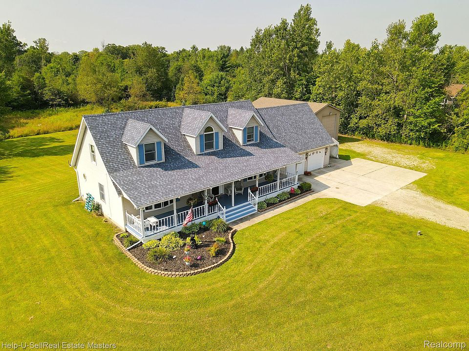 Escape to your own private paradise with this beautiful Cape Cod home nestled on 5.5 acres of scenic land in St.Clair Twp. This property is perfect for outdoor enthusiasts. Featuring an expansive covered front porch to welcome guests or swing and relax while enjoying a picturesque pond and a serene waterfall. Quiet and private and mostly wooded attracts ample wildlife to observe daily. Enjoy the main floor master en-suite with views of the pond. Large living room as well as a versatile den or office. Open concept kitchen & dining ideal for large family gatherings and entertaining. Upstairs are two large bedrooms and full bath that provide great space for family or guests. Additionally there is a 24 x 40 pole barn w/ 14ft sidewalls perfect for storage or projects, a great man cave. The 2 car attached garage offers walk up storage space of 27 x 12. In the highly desired Marysville school district yet benefitting from township taxes! This property offers the perfect bend of rural tranquility and modern convenience. Highway access and shopping just minutes away. Come and see the opportunities that could be yours when you make this house your home.