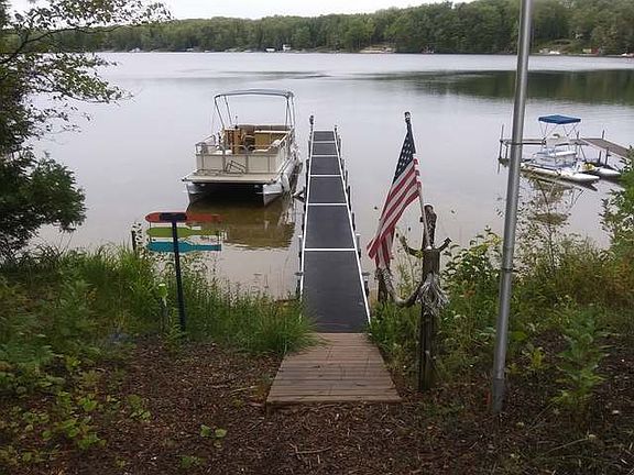 Hello water front buyers. This is a unique setup. Own a 12ft beach-boat tie up on Arnold Lake a nice all sports lake. Across road is home is 1800+ sqft, place on 4 lots. All brick and wood sided. Home offers 2 larger bedrooms, Large living room w/fireplace, kitchen , dinette area, full bath. Then add the family room also. It has 1 car attached garage too. All this home, garage and own frontage on a very nice Arnold lake, all it needs is you the buyer. Please note that the dock or boat are "not" included in the sale price.