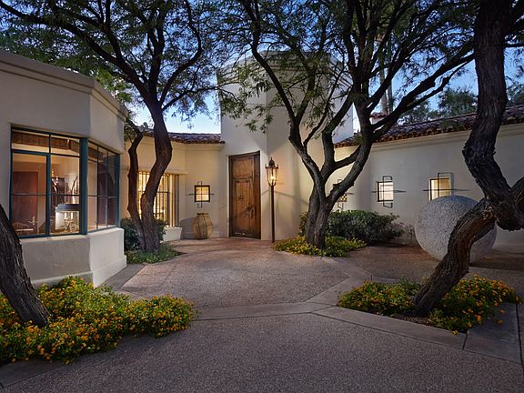 Stunning, one of a kind Spanish Colonial style home high on a hill in the Catalina Foothills Estates with sweeping city and Catalina Mountain views, unsurpassed quality and no detail left unconsidered. A long and winding driveway leads to grand, wrought iron entry gate, then up the hill to the 5,022 sq. ft., all masonry stucco masterpiece. Massive historic Sabino wood front door from Holler & Saunders opens to soaring foyer with high, massive cross beams, handmade forged steel windows and doors, leading into great room with inspiration from the Arizona Inn, white-washed beamed ceilings, Venetian plaster walls, glorious city views, clerestory windows, a symphony of doors including hand carved doors by Walt Lewis, antique light fixtures from Mexico and cherry hardwood floors. Kitchen offers old milk finished cabinets, historic Mexican chandelier, designer appliances and hand painted ceiling. One-of-a kind master offers two master bedrooms, custom dual walk-in European style closets, travertine floors, office and views from every window. Separate guest quarters, glorious professionally landscaped yards by John Stropko, negative edge lap pool, gazebo with fireplace for outdoor dining, 3 car garage, astounding design and style in all features make this a must see property for those wanting authentic Tucson character and quality.