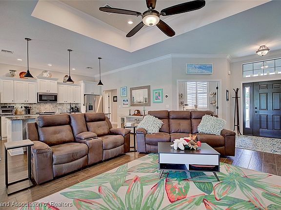 Do you believe in love at first sight? Prepare to fall in love the moment that you arrive at this custom 2020 built masterpiece! Built using the latest Energy Efficient materials and technique, Boasting over 1,800 of luxurious living square footage alone - this 3 bedrooms + bonus office/2.5 bathrooms/2 car + golf cart garage pool home features everything you could ever imagine to live the ultimate Florida lifestyle in total opulence! As you pull into the extra wide driveway- the pristine curb appeal offered by the lush landscaping, the stunning extra decorative details incorporated onto the home, and impeccable grand entryway will make you excited to arrive home. Enter into the home and step into the inviting central main family room impressively adorned with a custom tray ceiling and electric fireplace! The open, split floor plan concept of the home provides spectacular views of the RECENTLY INSTALLED heated, saltwater in-ground pool and golf course from nearly every room of the home! The pool is heated with a solar panel system and the pool deck is spacious for plenty of patio furniture. Immaculately spotless interior centrally located gourmet kitchen is one to be adored containing all top-of-the-line Stainless Steel appliances, copious amounts of Granite countertops, huge center island with sink, multi-level white solid wood cabinetry, and custom intricate mosaic tile backsplash. Generously sized bedrooms with the master bedroom containing a recessed tray ceiling with custom crown molding, plantation shutter window treatments, lighted ceiling fan, PLUS the most spectacular view of the golf course! The massive master en-suite bathroom is one that you will absolutely fall in love with - complete with generous amounts of custom designed closet space, fully tiled spa-like walk-in shower, elegant lighting fixtures, and exceptional custom mosaic tile detailing throughout! Extra convenient in-home utility room with extra storage space and half bathroom near the garage entryway. Plenty of space for your vehicles and golf cart is provided in the oversized 2 car Epoxied floor garage with supplemental golf cart door (both doors are insulated and have Wi-Fi capabilities) and bonus 12'x25' carport located on the right side of the home. Tile/Carpet flooring, 4 inch solid core plantation shutter window treatments, crown molding/baseboards, double pane energy efficient windows offered throughout the home. A section of the back yard adjacent to the pool cage is fenced-in to allow for your fur babies to enjoy the beautiful backyard safely. Central water with a private water treatment system, central sewer utilities. Located directly on The Deer Run Golf Course near the tee box on hole #4 in Sun ‘N Lake Estates of Sebring, FL– a Special District Fee of only $883/year applies to this property. Offered Fully Furnished not including the seller’s personal items (list available upon request). This home is move-in ready to enjoy Florida living at its absolute best!