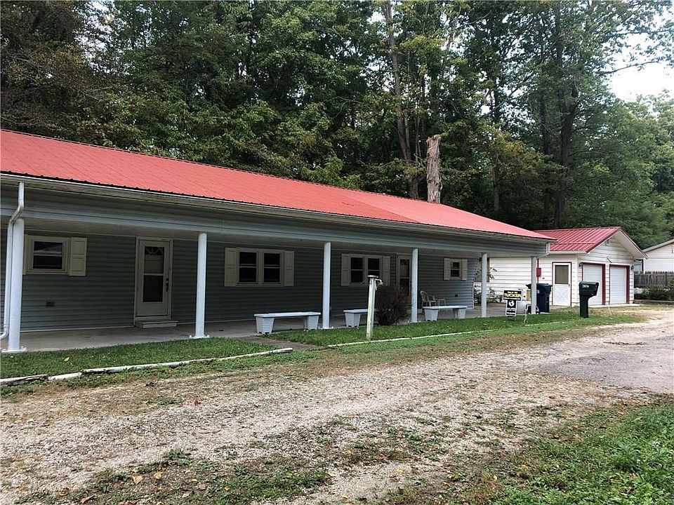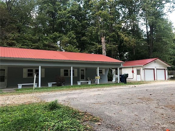 Very well cared for home. Has 2 bedroom and 1 and 1/2 bath. Nice built ins. Good size living room. Master bedroom has an adorable half bath. Eat in kitchen has back splash and a small bar. Nice 10 x 83 front covered porch with poured concrete patio with 12 steel pillars. All new windows, new roof New guttering and down spouts. 2 car detached garage with electric heaters and poured floors in attic and lights. Back deck has chain fence. This is on a permanent foundation. Vacant go and show Possession day of closing