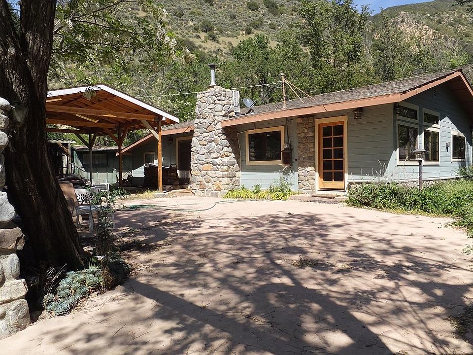 Extensively remodeled cabin in the famous Arroyo Seco Resorts area. Nearly all new windows, new cork & hickory flooring, river stone fireplace with insert. Beautiful kitchen with new appliances, skylight, good counter & cabinetry. Bedrooms with large closets, ceiling fans & wood finishes. New A/C & heating unit, tankless water heater, roof, foundation. Completely fenced yard, storage sheds, stone ponds, a covered back porch, new carport. All of this practically right next to Arroyo Seco River.