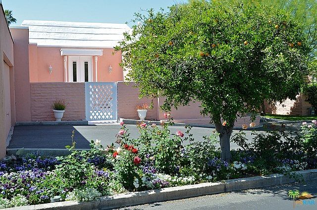One of the most beautiful developments in the desert, Marrakesh Country club is a paradise of pretty pink homes set in the most exquisite landscape you will ever see. The homes are Hollywood Regency in look and were designed by famed designer John Elgin Woolf. This home features expanses of beautiful, white polished porcelain tile and plantation shutters on the windows to give it a classic look. The kitchen sports stainless steel appliances. Located steps from one of two premier pools and spa that are heated year round, the views are of the mountains and lovely green belt. Golf, tennis, fitness center and Club House are all nearby.