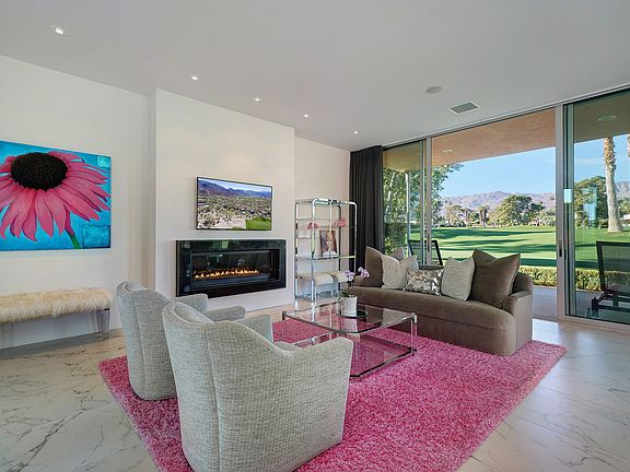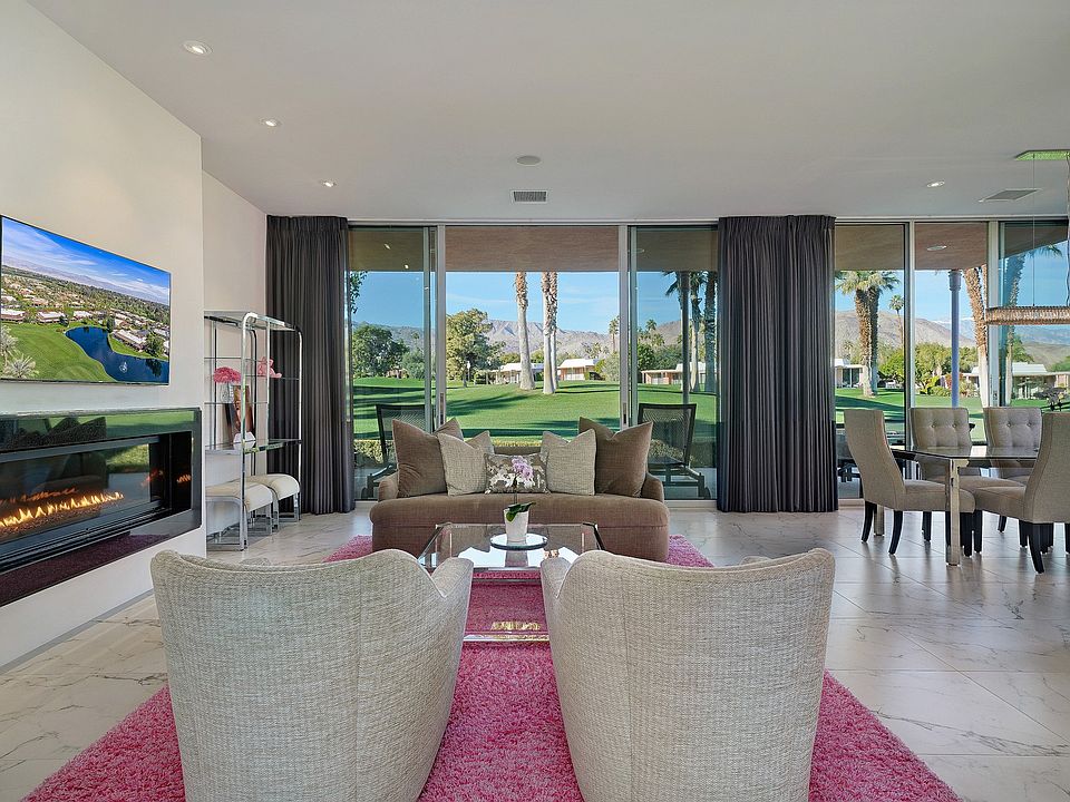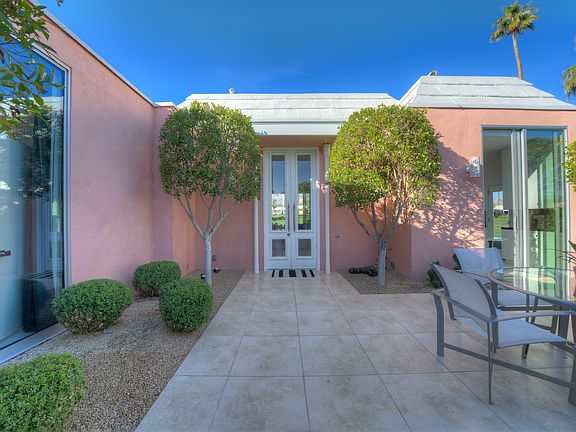 Stunning & sophisticated golf course living at Marrakesh Country Club. This 2-bedroom 2 bath residence has been transformed in the past few years into a wonderful example of desert living at its finest. A single level home with open rooms that are light and full of new floor to ceiling windows and sliders that are set against the green of the golf course. Improvements include new bathrooms, with a luxurious walk in shower and a gourmet kitchen with SS Viking appliances. The Terrace has been expanded to afford awesome views of the mountains and is steps away from the beautiful golf course. Attention to detail in design and interiors. This is one not to be missed.