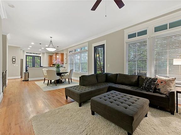 Lovely end unit with natural light throughout home. Walk to dining, shopping and Marta. Close to Perimeter Mall and all surrounding amenities. You truly cannot beat this location! Hardwood flooring on main level and stairs up and down. Granite and stainless steel in kitchen- open to family room and dining area. Luxurious master bath, which has been recently totally remodeled. Two car, side-by-side garage with entry to office or third bedroom. Plantation shuttters, and designer touches throughout. The Gramercy is a gated community in Dunwoody. Swimming pool available for you and your family and friends!