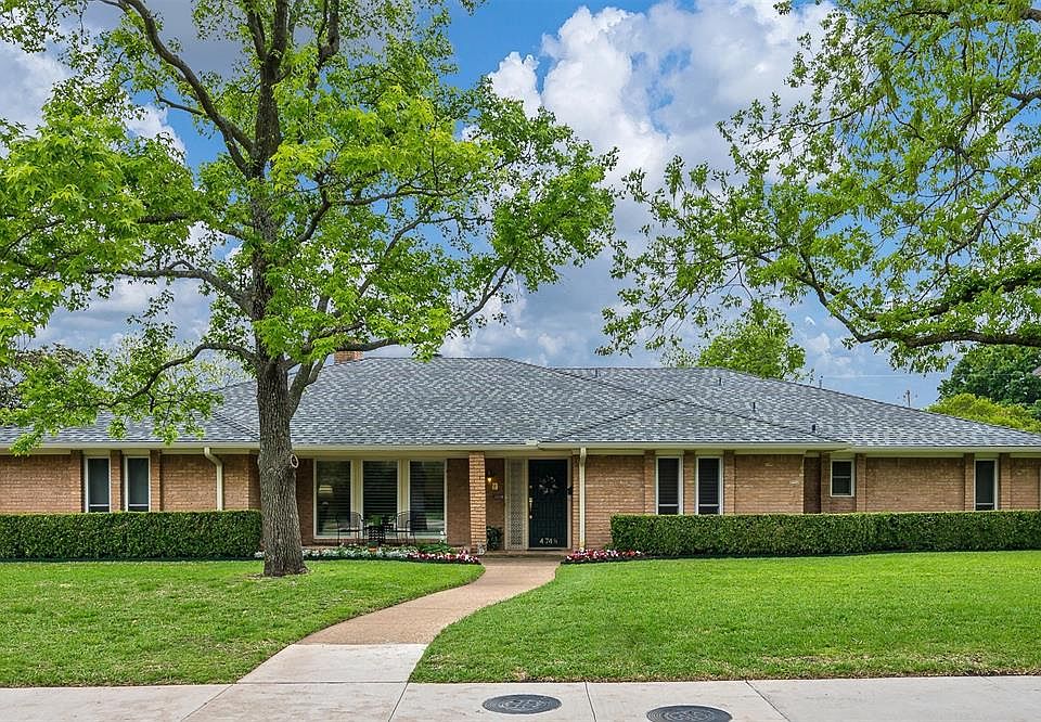 Mid-Century Modern one-story with split five bedroom floor plan. The split bedroom can serve as private guest suite or office! Located in the quiet neighborhood of Schreiber Manor and offers an exceptional open concept. Brick exterior, cathedral ceilings, wood flooring in living areas, and plantation shutters. Kitchen has granite countertops, breakfast bar, walk-in pantry, and is open to the family room. Master suite offers three walk-in closets, including a cedar closet. This home has a backyard big enough to add a pool and outdoor kitchen! Recently updated roof and gutters. Front and back security cameras. Close proximity to great shopping, restaurants, and schools including: St. Rita, Jesuit, and Hockaday. 2021-05-24