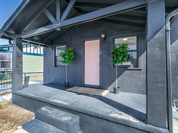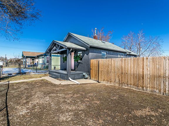 This adorable Globeville bungalow oozes charm and can be your own bit of Denver history. A double peaked roof, delightful front patio and unique, new exterior paint show you this home is something special from the curb! The front yard holds tons of possibilities with plenty of room to add more parking, recreation space, gardens or landscape. But don't let the front yard hold your attention forever! Inside is a homey and attractive space with new interior paint, and a sitting area open to the kitchen that makes entertaining a breeze! Large windows bring in tons of light and the elegant archway gives a whimsical touch of yesteryear. Original hardwoods lend to the historic touch, but the updated kitchen with a fabulous pop of color on the cabinets puts modern conveniences right at hand. New stainless appliances, including a gas stove and a breakfast nook make for easy meals and parties. Two bedrooms, an office or flex space and a full bathroom boast updated light fixtures, six panel doors and storage space. The basement holds full size laundry and built-in shelving along with space for all your adventure gear. The expansive backyard with alley access is ready for you to put your stamp on it- imagine how easy it would be to make it a hip haven with a deck, BBQ, fire pit, hot tub, corn hole court... and be living the dream!