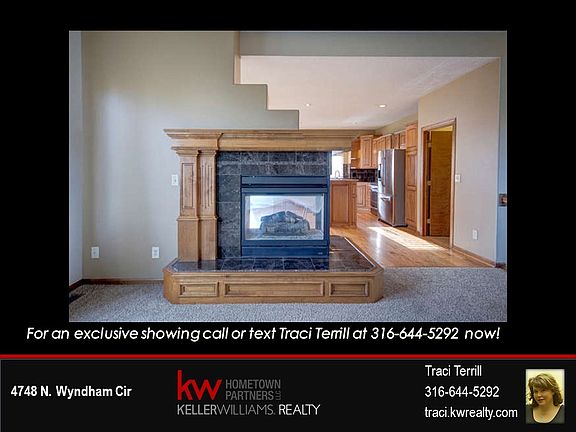 traci.kwrealty.com call 316-644-5292 for a personal exclusive showing. Open House Sunday 2-4pm! This quality built Lies-Bugner home is absolutely stunning! This beautifully landscaped waterfront home is perfect for evening entertaining on the covered deck and shaded spacious patio. As you enter this home, you will be delighted to see the rose stained glass entry that leads to the formal living room featuring a 3 way fire place opening to the kitchen, hearth family area and dinning. The granite counters, custom time tile, rich maple cabinets, high-end appliances, island and natural light accent this open kitchen! The master bedroom, highlighted by the coffer ceilings and beautiful lake view, opens to a spa-like master bath with a walk-in closet larger than most! The walk-out lower level of this home features a beautiful wet-bar, warm fire place, specialty lighting and is wired for surround sound (also includes a custom media room). All the carpet is new and the living room, dinning, and kitchen were recently painted. Roof and exterior paint were completed in the last 2 years. This home is mechanically sound and has been meticulously cared for. This home also features: invisible pet fence, sprinkler system, well, Hunter Douglas blinds, tinted windows, wrought iron fence, over sized three car garage and so much more! Come by and see your NEW home!