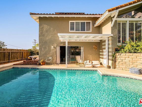 MCM dream come true with pool in Glassell Park's coveted Eastridge Estates! Perched on a tranquil hillside, this 4BR/3BA residence offers a harmonious blend of classic 1960's architecture and contemporary refinement. Built in the Ray Watt community developed by one of Los Angeles' most prolific builders of the era, this is a true mid-century timepiece with thoughtful updates to the bones and systems. Modern improvements include solar panels, engineered hardwood flooring, and newer plumbing, ensuring efficiency and comfort while preserving its original charm. The double-door entry welcomes you to the foyer on original terrazzo floors with soaring vaulted ceilings and a decorative fireplace creating a warm ambiance, surrounded by gorgeous gallery windows. Enjoy cooking in the light-filled kitchen with all-electric appliances, and sliding doors that extend effortlessly onto a patio perfect for leisurely mornings or evening cocktails with a view of the pool. Upstairs, three serene bedrooms await, including a primary suite with an en-suite bath and ample his and her closet space. The lower level features a retro sunken den showcasing original wood paneling, retro tiled floors, and a vintage mini bar that calls for cocktail hour! An additional bedroom and bath on this floor provide flexible options, whether for guests or a home office. Just off the den, the sparkling pool and lush landscaping create a private retreat with multiple entertaining areas.This home perfectly balances vintage character with smart modern upgrades. A two-car garage with EV charger connects to the kitchen for easy and secure storage. Set in the heart of NELA and close to local treasures like Little Ripper Wine Bar, Highland Park Cafe, Dunsmoor, The Grant, and not one, but TWO Targets! Commuting is a breeze with easy access to the 2 & 134 freeways. Zoned for sought-after Delevan Drive Elementary and Eagle Rock High School. Now's your opportunity to own a fabulous pool home in Eastridge Estates!