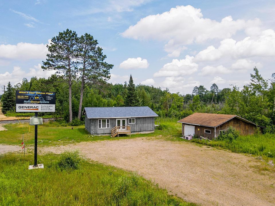 Business opportunity or a primary residence, this updated commercial building has most recently been used as rental house. With living room or showroom, two bedrooms (or offices), full bathroom with a shower and an updated kitchen, the property has several use opportunities. The seller is a WI real estate broker and has replaced the following items in the last few years: roof, windows, doors, flooring (except one room), most lights, full bathroom, washer, dryer, kitchen and appliances, electrical, furnace, water heater, pressure tank, water softener, drywall, interior painting, most trim work, and exterior siding paint. The property has a two stall garage and is located at the corner of Hwy 17 and Shepard Lake Rd. Buyer to verify zoning uses.