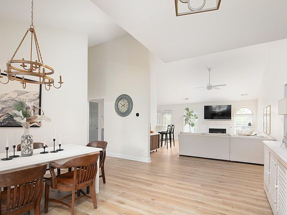 Welcome to 4748 Windstar Way, a beautiful ranch home in the highly sought-after Pinnacle neighborhood. Offering nearly 2,000 sq ft, this 3-bedroom, 2-bath residence features an inviting open-concept layout with vaulted ceilings that create a spacious, airy feel. The heart of the home is the stylish kitchen, complete with quartz countertops, a tile backsplash, and under-cabinet lighting, seamlessly flowing into the living and dining areas. The primary suite boasts a private en suite bath and a generous walk-in closet for comfort and convenience. A bonus room at the front of the home provides flexible space for a home office or den. Flooring includes light oak LVP throughout the main living spaces and plush carpet in the bedrooms. Step outside to enjoy a large backyard with a deck, perfect for relaxing or entertaining. The Pinnacle community offers private pool access for just $425 annually, and you'll love being within walking distance to Veterans Park. With a 2-car attached garage and a prime location, this home is move-in ready for its next owner.