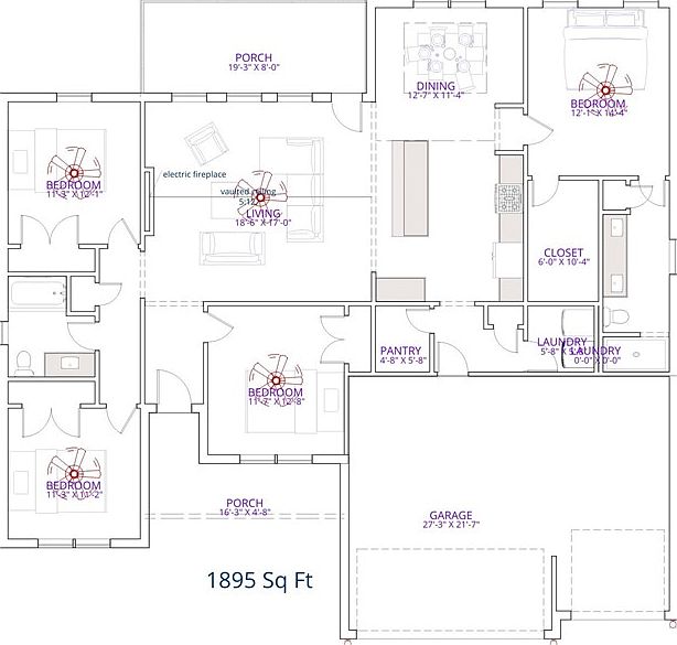 Experience the Marvin plan at Spring Creek Farms. This modern community will feature a community pool, playground and walking trails. The Marvin Plan offers refined single-level living with a thoughtfully designed 4-bedroom, 2 bath layout that blends comfort and sophistication. The open-concept design is enhanced by soaring vaulted ceilings accented with beams, and electric fireplace. The kitchen is beautifully appointed with custom soft-close cabinetry extending to the ceiling, a gas range, fully vented hood, and built-in microwave—perfectly balancing style and functionality. The primary suite is a serene private retreat, featuring a a tray ceiling in the bedroom and a luxurious walk-in shower for a true spa-like escape. A 3-car garage and a large covered patio with gas and ethernet hookups complete this thoughtfully crafted luxury design