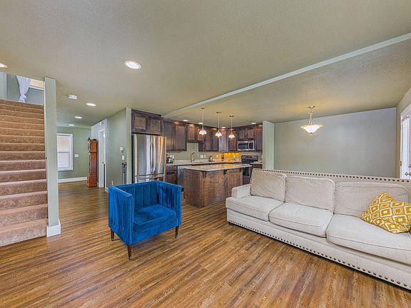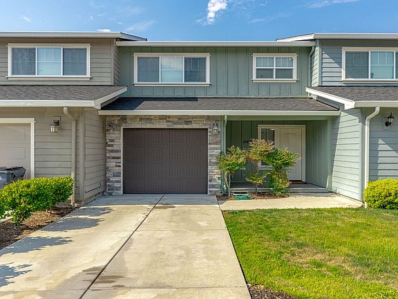 Desirable East Medford Townhome with views! Enter the main floor to an open concept living room, dinning and kitchen. Kitchen has granite countertops with large island, stainless steel appliances, gas stovetop and loads of storage. Wall of windows and double French doors lead to a large covered deck with beautiful views of Roxy Ann. Head upstairs to the large master suite with granite countertop dual vanity, walk-in closet and more views. Second bedroom also has its own en-suite bath with walk-in closet as well. Head downstairs from the main floor and there's a family room with a French door leading to the patio with gated fenced yard and raised garden beds. Opening out to a large community common area which ensures no one builds behind you. Also on the lower floor is the third bedroom, third full bathroom, oversized closets and an abundance of storage.
