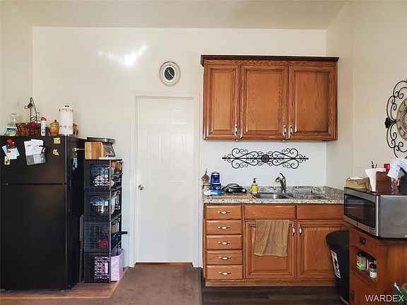 Very nice mobile home on a double .36 fenced acre lot. Fully landscaped. Easy care rock. Concrete driveway. The mobile had been divided into 2 seperate apartments. One has a kitchen, dining area, living room, bedroom and bath. The other one has a living area, kitchenette, master bathroom and bedroom. You can use it as a 2 bedroom home with 2 living areas or you can use it as 2 seperate apartments. Truly a must see. A great way to have a duplex and a much cheaper price. Property has 4 storage sheds.