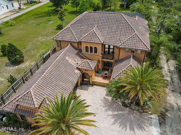 This Amazing 5,133 sqft 5br-4full/2half bths Spanish Style Home w boat dock on the St. Johns is designed for family living & entertaining. Home features a 10 seat home theater, screened, self-cleaning in-ground pool, art studio, 2 balconies, two Master Suites, 4 Jacuzzi tubs,100-year terra cotta tile roof, three-car garage & much too much more to list here. Huge kitchen has a 48'' Thermador pro gas range, double electric oven, marble countertops & 3.5'x9' island w/sink, dw, compactor, 2gbg disposals, wet bar & walk-in pantry - kitchen & formal dining spaces. Minutes to shpg & dining. Situated on a beautifully treed 3/4 acre lot w/a welcoming entry courtyard, paver circ driveway & a treehouse for the kids and firepit in the fully fenced bkyd, this elegant Old Florida home is a must see. Mudroom w/large adjacent laundry, top of the line fixtures throughout, LP instant tankless/limitless on-demand hot water, fire pit, minutes to shopping & dining.
