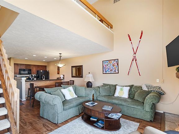 Great end unit with views of Boyne Highlands and next to Nubs Nob. This three bedroom plus loft condominium has an ideal location near the fitness center with indoor pool, sauna, jacuzzi, and exercise area, also near the outdoor pool, tennis courts, pickleball area and close to cross country and hiking/biking trails. Enjoy a beautiful stone fireplace, upgraded kitchen with newer cabinets and granite counter tops. Recent updates include newer furnace, water heater, A/C, and washer and dryer. Offered fully furnished. On-site rental management available.