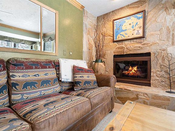 Welcome to Trout Creek #124, a charming single-level condominium with an inviting northern Michigan aesthetic in Harbor Springs' sought-after Trout Creek resort community. This 2-bedroom, 2-bath end unit offers 982 square feet of comfortable living space set in a wooded setting close to the new indoor/outdoor pool and within proximity to the outdoor pool, indoor pool, and fitness center. A stone-front gas fireplace anchors the living area, complemented by warm wood tones that include crown molding and wood paneling. The well-equipped kitchen includes updated counter tops, sink, and newer appliances. The primary bedroom offers a full tile walk in shower, and large jetted tub. The guest bedroom is convenient to the second full bath which has a new vanity and solid surface counter top. Step outside to the oversized deck for relaxing or entertaining with views of the surrounding natural setting. Central air, ceiling fans, and in-unit washer and dryer round out the everyday conveniences. A detached one-car garage provides parking and storage. Trout Creek delivers the complete Harbor Springs lifestyle with amenities including a clubhouse with indoor/outdoor pool and outdoor jacuzzi; a fitness center with indoor pool, indoor jacuzzi, sauna, and exercise area; new tennis and pickleball courts; hiking/biking/cross country and snowshoe trails; playgrounds; and fishing ponds. The property borders state land with snowmobile trail access for year-round outdoor recreation. A complimentary ski seasonal shuttle runs to Nub's Nob, just one mile away, while The Highlands is only 1.5 miles from the resort. Downtown Harbor Springs' shops, dining, and Lake Michigan beaches are minutes away. Whether you're seeking a ski season retreat, four-season getaway, or lock-and-leave escape, this condo delivers the Northern Michigan lifestyle. Check out the virtual tour here-->https://my.matterport.com/show/?m=CdGFFwWqpyY&mls=1