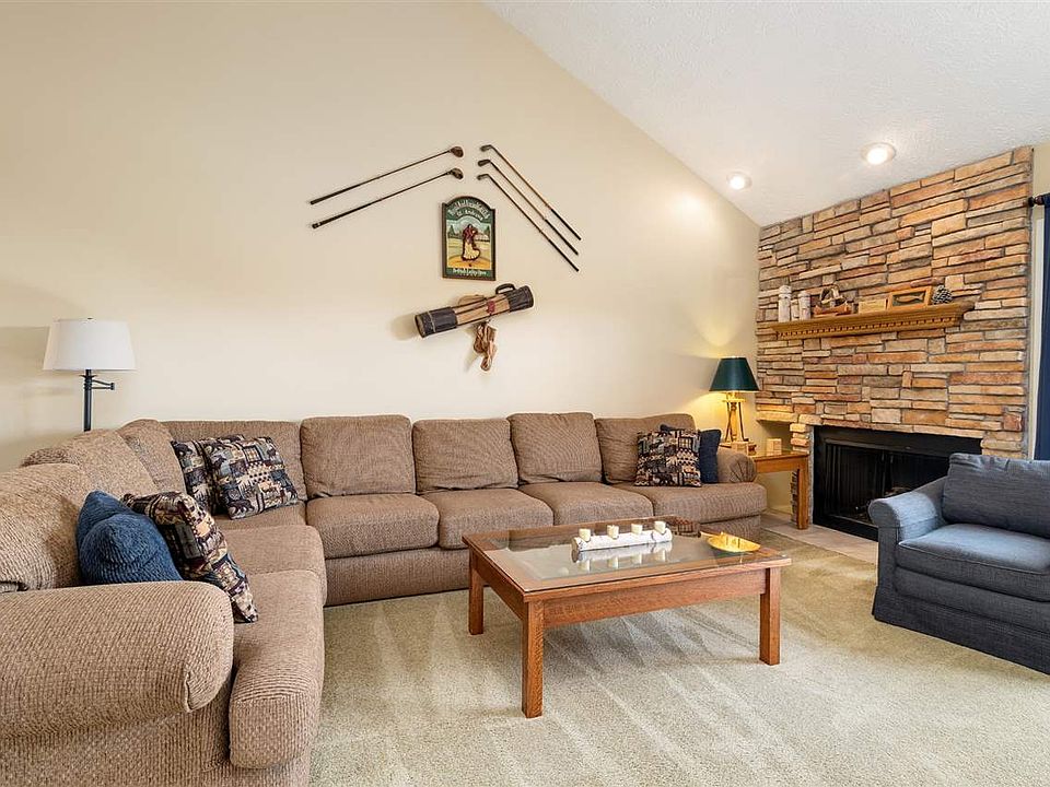 One of the largest, most unique condominiums at Trout Creek. Three levels of comfortable space for large groups or families. Beautiful stone fireplace, soaring cathedral ceilings, spacious kitchen with granite countertops, numerous decks that overlook ski slopes and soccer area. Fully furnished and turn-key! Main floor master suite, four additional bedrooms, and large family room in in finished walkout lower level. This unit offers GREAT rental history...call for more information!