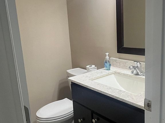 Unit has been completely renovated. Entire kitchen and bathroom cabinets, floors, carpet, all interior/exterior doors. New deck, ample parking, 1 garage w/ new door and opener. Apartments equipped with brand new stainless steel appliances, stone countertops, washer and dryer hookup, central heat and air. Full basement. Move-in ready! Application fee applies. Tenant is responsible for all utilities. No pets. No smoking. Security deposit and first months rent due upon lease signing (1 yr). Lawn and snow removal included.
