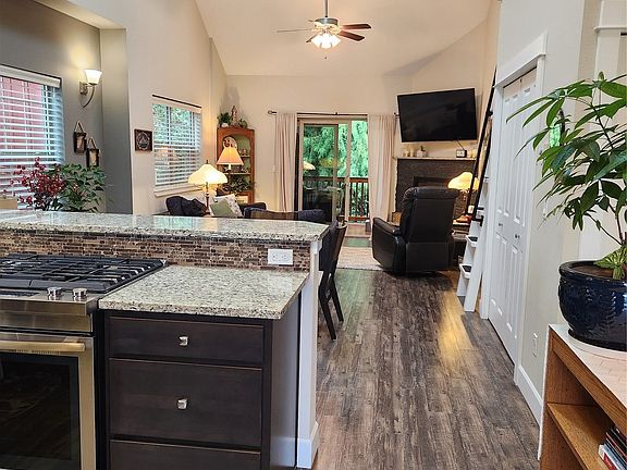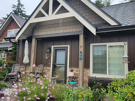 Birch Bay craftsman cottage style 1-story (w/ loft) townhome end unit at The Tides at Birch Bay. Sunny south-facing garden patio in front, back deck facing forest. Private feel. Lushly landscaped community w/outdoor pool/clubhouse less than 5 minutes to Beach. Bay & spectacular sunsets visible from front community grass field. Well designed & stylish exterior cement plank siding, wood & stone. Interior w/ granite counters, glass tiles, rock surrounded natural gas fireplace, stainless appliances, vaulted ceiling & skylight. 933 SF, 2 BR+ loft. 1.75 baths. Loft area an office/exercise room? Paneled back deck overlooks forest sloping down to a creek. Storage off of deck. Near the seaside fun of Birch Bay beaches, restaurants and more! Pets OK.