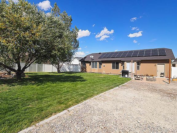 Great rambler on spacious 1/3 acre lot located in quiet community with parks and trails nearby plus NO HOA!! Conveniently located just minutes from Bangerter Highway, Mtn View Corridor and the District shopping center. Open floorplan offers main floor great room with large kitchen Island, gas fireplace, vaulted Ceilings and hardwood floors. Fully finished basement with theater room and space roughed in for 2nd kitchen. Spacious fully fenced backyard offers lots of room for the kids to run and play. Oversized garage with extra deep 3rd bay will hold 3 cars or a great workshop area with tons of storage space. Paid for solar panel system already installed for SUPER low power bills. Did I mention this neighborhood has NO HOA!!
