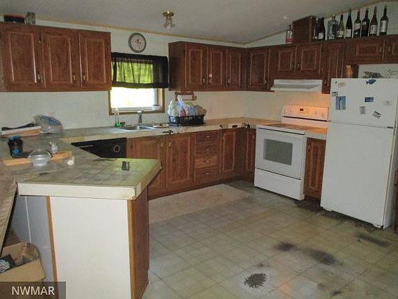 Single wide 3BR/2BA mobile home in need of cosmetic updates. 2 double garages and steel shed on 5 wooded acres. Located just south of Bemidji.