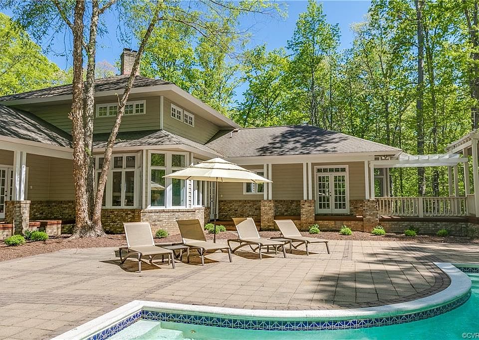 Welcome to this one of a kind stunning home nestled on an 8.34 acre lot in a quiet neighborhood minutes from Hermitage Country Club. You will love the attention to detail and unique features this home has to offer. The welcoming entrance boasts exquisite trim work, winding staircase, gorgeous chandelier and an amazing stone centerpiece. The family room offers a stone fireplace and vaulted ceiling with beams open to the 2nd fl. This kitchen is a chef's dream to include gas top cooking, subzero frig, new stone counter tops, double wall ovens, gas stone fireplace, 2 islands, craftsman style cabinets and so much more. The first floor master suite offers a separate sitting area/study, built in wardrobes, walk-in closet and bath complete with tile shower and soaking tub. You will love entertaining as this home centers around your private backyard with it's priceless view of nature and the Gunite pool. The wraparound deck offers outdoor dining at one end and a hot tub at the other. Two of the upstairs bedrooms have full baths and new carpet. All hardwoods have been refinished and the interior has been freshly painted. Minutes from Short Pump and access to 288 at West Creek too!