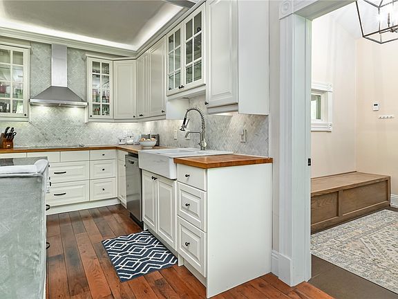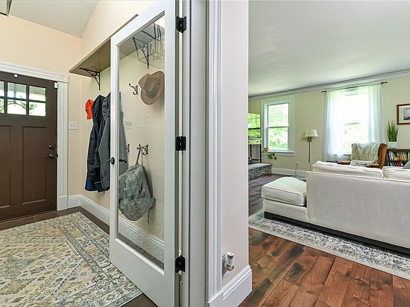 Welcome home to this renovated and restored 1900's farmhouse with a woodworker's dream garage on a private 1-acre lot! This solid built home has all the luxuries of today's expected comforts and more. Eat-in kitchen with a huge center island with granite, white cabinetry, stainless steel appliances & butcher block countertop and tile backsplash. The family room is right off the kitchen with a cozy woodburning fireplace and plenty of windows to make it light & bright. All original trim is the stairwell and dining room has reclaimed brick decorative fireplace. 1st floor laundry/pantry and the entry has heated flooring. Master suite offers a large walk-in closet and gorgeous ensuite with a custom-built sauna, heated floors, clawfoot tub, curb less walk-in shower, & custom cabinetry. The additional upper-level bedrooms are good size and have a full hallway bath. Relax and take in the wooded scenery under the 1,000 sq ft wrap around covered porch overlooking the flat yard and garden plot