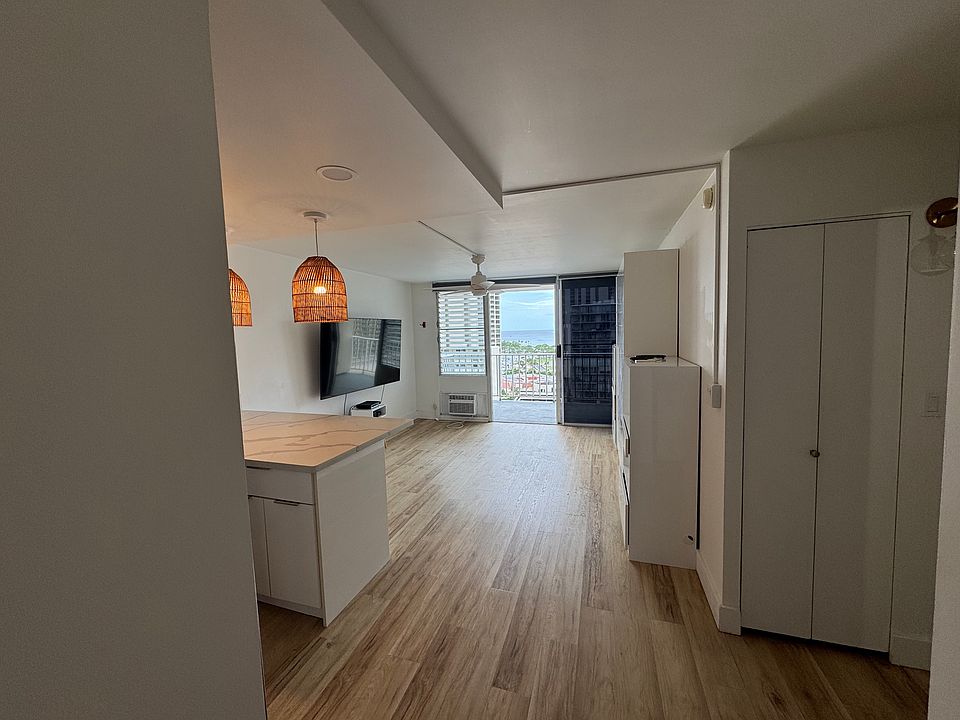 Newly renovated penthouse studio with ocean and city views! Top-floor unit in a secure building just steps from Ala Moana Mall and the beach. Features: Ocean-view windows with great natural light Rooftop pool, sauna, and sundeck Modern kitchenette and updated flooring Air conditioning and laundry in unit Walking distance to shopping, dining, and surf First floor Garage Parking Perfect for professionals or couples looking for a clean, modern space in the heart of Honolulu. Utilities and internet included (electricity cap of $150/month; excess billed to tenant). No smoking or vaping in unit or building. 6 month lease; shorter terms negotiable. Security deposit equal to one month's rent. Garage Parking Renter's insurance required.