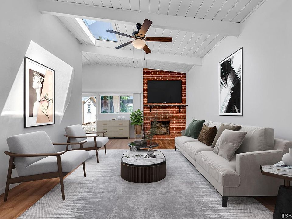 Rare Downtown Pleasanton 3BD/2BA Contemporary Level-In on a large lot just steps from shopping & dining, top-rated schools, local parks and all the other renowned amenities that make Pleasanton so popular. 475 Bonita Avenue greets visitors with a functional floor plan that features, at its center, a bright FLR w/fireplace, vaulted ceilings & skylights, an adjoining modern galley kitchen w/lots of cabinet space, and an adjacent dining area with sliding doors that open to the large rear yard & patio. A roomy primary suite w/updated BA, 2 additional ample BDs, and a 2nd updated guest BA, complete the home's well-appointed quarters. Fresh paint, flooring, updated BAs, and a newer heater, water heater and windows are just a few of the home's recent enhancements. A large 2-car garage w/laundry & room for hobbies and storage, PLUS an 8,000 Sq Ft lot with big front & back yards ready for gardening, entertainment, and play, 2 storage sheds in the rear, AND a bonus gated parking pad ready for boat or other RV storage, complete this comprehensive offering. Excellent central location in a quiet neighborhood, walking distance to Downtown Pleasanton, K-12 schools & local parks, AND just minutes to markets, Stoneridge Mall and EZ BART & 580/680 freeway access. Come see why they call it Bonita!