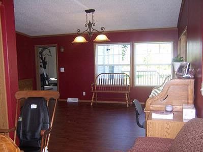 147 acre farm with view of countryside. The manufactured home has 3 bedrooms and 2 baths. The master bath has a whirlpool tub and separate shower. Nice greatroom, kitchen with appliances and an island. Separate formal dining room, bonus room on back, land has fencing, fruit trees, and 3 sheds.