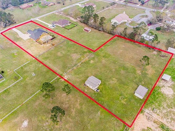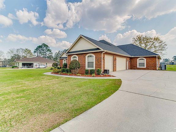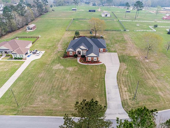A rewarding escape, peacefully situated: Luxurious and upgraded, this 4 bedroom, 3.5 bathroom, 3 car garage executive home rests on 4.13 acres (per county) of beautifully maintained fenced pastures and grounds in the heart of Cantonment, making it a horse lovers dream! Richly-appointed spaces include large gathering areas great for entertaining, an office with built in desk and bookshelves, a bright open formal dining room and living room with a vent less gas fireplace and a professional-grade kitchen featuring a large island, stainless steel appliances and Silstone countertops. The kitchen opens up to a family room with a large built in entertainment center, tray ceilings with rope lights and room for a pool table. The split floorplan has a large master suite with double tray ceilings and a reading area. An impressive en-suite is furnished with a large two person shower, jacuzzi tub, custom built in vanity, custom cabinetry and a large walk in closet. Additional bedrooms are oversized. Bedrooms two & three are Jack and Jill, the fourth bedroom has it's own full bathroom. Step outside to the backyard oasis and you'll find a beautifully landscaped, pool area with multi level decking. A natural gas heated gunite pool (3-5ft) with an oversized hot tub and waterfalls will ensure year round fun. The outdoor space is an entertainers dream with gas hook up for your grill and a covered patio with TV and speaker hook ups. Beyond the pool and into the pasture you'll find a four stall barn with a tack room and a feed room. The barn includes automatic water bowls and heated water for bathing horses. Other features include but not limited to whole house generator, deep well that provides water to the pastures and two acres of irrigation around the home, 3 stall pole barn for equipment storage, hardwood floors and new carpet in bedroom, 2x6 construction, hurricane impact windows, new roof 2020, pool alarms, ADT alarms with exterior cameras and an attic decked for storage.