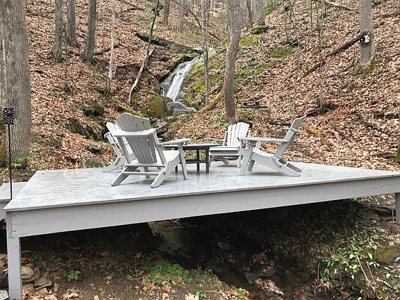 Beautiful like new 3 bedroom / 3.5 bath home complete with waterfall, trails, and mountain views. Located only minutes from downtown Franklin in the desirable Clarks Chapel area with a paved road all the way to your private driveway. The 13.6 acerage includes an adjoining 2 acre lot suitable for building. This elegant home offers all the perfect mountain touches- vaulted ceilings, stone gas log fireplace, hardwood floors throughout, and new granite kitchen countertops and island. The master suite on the main level is very spacious and inviting with vaulted ceilings and plenty of windows that look out at your private backyard waterfall. The en suite bath offers a double vanity, shower, as well as a soaking tub for relaxing. Upstairs you will find two spacious bedrooms, each with their own private bath. Also upstairs is a nook that is perfect for reading or relaxing. Kick your feet up indoors or step outside and enjoy the wonderful natural setting of the property. Take a stroll on the gentle path out to the deck at the bottom of the waterfall, gather around the nearby fire pit, or go exploring on one of the private trails. The gazebo offers wonderful long range mountain views and gorgeous sunsets. Rock your cares away on the full length screen porch and listen to the soothing sounds of the creek that runs just below your feet. This place is all about privacy, comfort, and tranquility...inside and out. Realtors welcome. By appointment only.