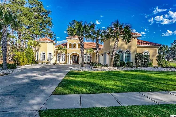 Stunning Mediterranean Custom Home features a dramatic entry and the 'Wow Factor'? open floor plan. This One Level home has 4 bedrooms, 4 1 2 baths with all the upgrades including 12' ceilings, 8' doors, arched openings, rounded corners , plantation shutters, and amazing views of the flat backyard overlooking the pond. The breath taking kitchen is a cooks delight with double ovens, Quartz counters, flat top range for smooth, clean look, custom chandelier, bar area, large pantry, and tons of cabinets. Entertain on the 1000 sf covered lanai with outdoor kitchen offering large grill, refrigerator, flat top grill, sink, and bar area with linear fire built in for warmth and ambiance. This split floor plan has a Master Suite with walk-in shower, Jacuzzi tub, double vanities, 17' ceilings, his and her closets, linen closet and sitting area. Additional 3 bedrooms with on-suite baths and large closets. Attention to details inside and out in this home located in Prestigious Cypress River Plantation. This community is gated, has 24 hr security, Intracoastal Waterway Access, luxurious pool, clubhouse, exercise room, restrooms, and kitchen area. Also enjoy the boat launch, boat and RV storage, tennis courts, basketball courts, and playground area. *Owner is related to a SC real estate licensee, but is not the listing agent.
