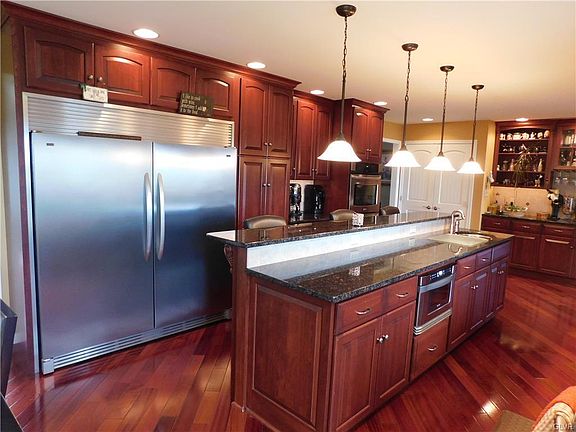 If you are picky and truly understand quality you must see this 3,000 square foot home. Lets start with the 30 x 17 Stofanak custom kitchen complete with top of line appliances, 10 foot granite center island with breakfast bar, server with dedicated ice maker and 6 foot high wine cooler. Beautiful Brazilian hardwood floors run through the first floor. Dining room addition with cathedral ceiling and circle top window to enjoy the awesome views. Master bedroom is 22 x 21 and boasts a completely remodeled bath and huge walk in closet. The finished basement is accented with an 8 seat wet bar and rec room with an adjoining workout room. Walk out to the beautiful in ground pool or go up top to the deck and savor over the views that go on for miles and miles. This 4 bedroom, 3 1/2 bath home is in tip top shape and no expense has been spared.