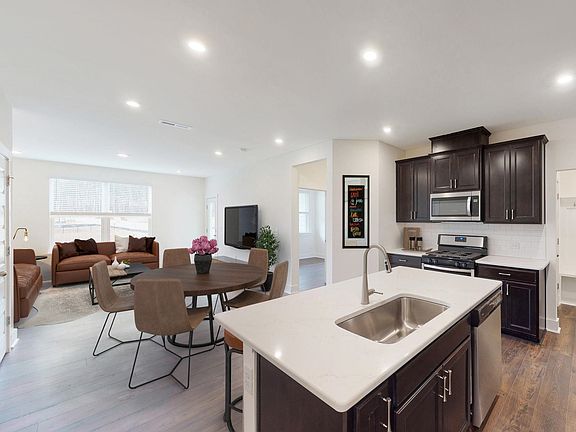 Addison 2-story end unit in prime Cary location with 2-car garage offers 1st floor guest suite with full bath, kitchen has large island, quartz countertops, ss appliances with gas range, 42" gray cabinets, and tile wall backsplash. Hard-surface floors throughout entire first floor with wood stairs and covered patio! Minutes to Beaver Creek Commons, Costco and easy access to Hwy 55, 64 and 540.