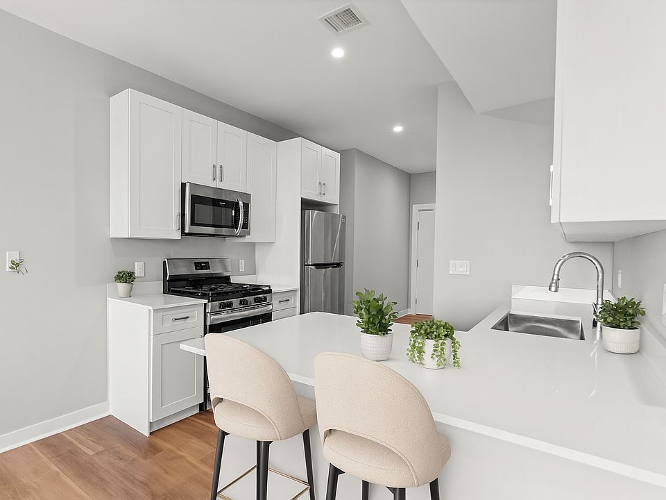 New Luxury Construction! Modern 780 SF 1-bedroom residence featuring an open kitchen with premium finishes, full-size washer/dryer, and designer bathroom. Enjoy access to a fitness center, lounge, outdoor patio, and rooftop terrace with skyline views. Elevator building with optional heated indoor parking. 13-month lease last month free! Tenant pays electric & gas. Landlord covers water, sewer & trash. No smoking. Pets upon approval.