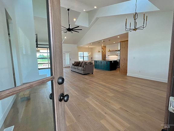 This custom home is the complete package with plenty of space situated on 5 acres. Single level 2,552 sq ft , 4 bedrooms, 2.5 bathrooms, Oversized 2 car garage with a full sized RV garage. Meticulously appointed with quality finishes throughout the home- including modern interior finishes, granite countertops, tiled master bathroom, custom cabinets and luxury vinyl plank flooring. The Kitchen is complete with stainless steel appliances , a large island, gorgeous cabinetry and an amazing butlers pantry hidden by what appears to be cabinet doors! The family room is vaulted with sky lights that allow natural light to flow in , a cozy fireplace, a unique glass roll up door leads out to an extended covered patio. The acreage has 5 water rights and pressurized irrigation ready to go. This one of a kind property is waiting for you. Call today!