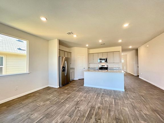 Inviting single-story NEW home with 4 bedrooms and 2 baths. Step into the home through a spacious foyer that seamlessly leads to the kitchen. The open kitchen design offers a captivating view of the living and dining area, boasting granite countertops, stainless steel appliances, a stylish decorative tile backsplash, and a convenient walk-in pantry. The main bedroom, Bedroom 1, is strategically positioned off the family room and includes a generously sized walk-in closet and an impressive walk-in shower. Additionally, the Irvine II features a covered rear patio that provides a delightful vantage point overlooking the professionally irrigated and landscaped yard. Location-wise, this property is ideally situated just minutes away from I-35, Downtown, UT, and placing you in close proximity to various shopping, dining, and entertainment options. With easy access to major roads like 45 and 130, commuting to work or exploring the city becomes effortless. You'll also find major employers nearby, making it an ideal choice for professionals. To add to the convenience, a refrigerator, washer and dryer is already in place. Don't miss out on the opportunity to make this gorgeous SMART one-story home your own. Contact us today to schedule a viewing and secure your rental home.