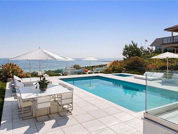 One of the most important and architecturally significant homes in the area, this direct waterfront modern masterpiece with a heated gunite pool is set on the sandy shores of Fairfield Beach. This is an incredible opportunity to have your own private resort while creating memories that will last a lifetime. Electric gates welcome you, leading to the spacious motor court. From there, you discover the exquisite entrance courtyard with cascading water wall which makes a wonderful additional outdoor entertaining space. Enter the foyer, where views of the sea are immediately apparent. You will be enchanted by the floating glass stairs, unobstructed open plan and large expanses of glass which beckon you to discover the world-class amenities. The vast living and dining areas are well-appointed. A more intimate den is set quietly on the side. The Poggenpohl kitchen exudes minimalist luxury and fine appliances are the finishing touch. Phenomenal gym/play rm. 5 spacious bedrooms have wonderful views and electronic window shades; the baths are chic and stylish. The master suite has commanding views of the water, beach and pool, with an awe-inspiring skylight, wonderful glass-tiled master bath and a balcony w/ heaters. Marble surrounds the pool w/ auto cover, spa, outdoor kitchen - all enclosed by glass for uninterrupted views. Cabana w/ bath & changing space. Additional outdoor gathering space leads to the sandy beach.