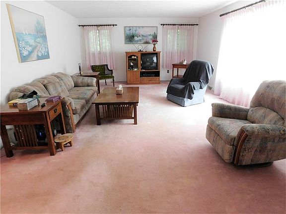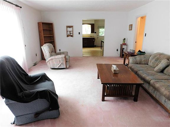 This house is for you! 2 bedroom ranch nestled on a secluded lot. Very big living room and eat in adjacent kitchen. Massive Master bedroom with full bath and double closets,2nd bedroom with access to covered porch and fireplace,Laundry room on lower level ,enclosed "Pittsburgh Bath" , Massive 3 car garage with separate storage rooms,cement drive way with plenty of parking. Enjoy outdoor activities on the covered porch or large park like yard. Come take a Look !