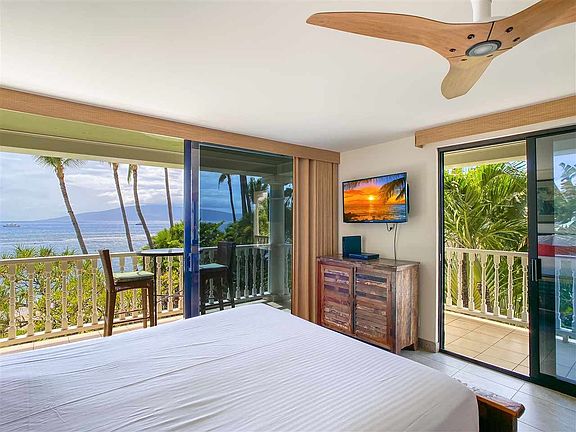 LAHAINA SHORES BEACH RESORT PREMIER CORNER OCEANFRONT UNIT. This *corner oceanfront studio condo is located on the 3rd floor of the recently renovated Lahaina Shores Beach Resort. This rare corner unit is one of only 5 in the building and only one of two ever to be resold since original construction in 1974. Just next door is the very popular 505 Front Street, joined by footbridge, where you'll find a charming outdoor center filled with some of Maui's top restaurants, luau's, boutique shops, art galleries, convenience store, live entertainment and much more. All the best of Lahaina's famous Front Street, including Banyan Tree Park, the Lahaina Harbor, art galleries and more are just 2 blocks away as well. This unit was tastefully renovated floor to ceiling in 2018 by Palani Alexander Designs and is a Premier vacation rental unit.