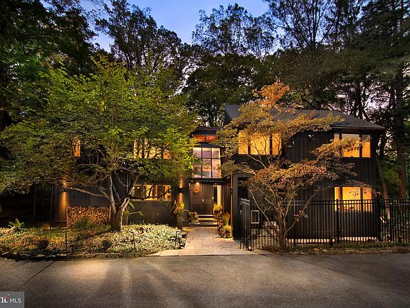 Introducing Stillpond, a secluded 2.27-acre haven located in the highly desirable, walkable St. Davids neighborhood, just minutes from downtown Wayne. This custom-built contemporary home offers 4 bedrooms, 2.5 baths, and an extraordinary landscape featuring a pond, cascading waterfalls, a stream, and a grotto with a charming stone bridge. This peaceful retreat blends breathtaking natural surroundings with modern luxury, highlighted by a new roof added in 2022 and the recent removal of many trees, creating an expansive, inviting yard. Enter through double doors into a bright, sun-drenched two-story foyer with skylights and soaring ceilings. The spacious living room, with its floor-to-ceiling windows, offers stunning views of the landscape, complemented by a magnificent stone fireplace that extends to the ceiling. The buttress-beamed ceiling adds architectural interest, while custom-built wood and art display boxes enhance the room’s design. Fully renovated in 2024, this home showcases high-end European materials, reflecting a sleek, mid-century modern aesthetic. Stunning Valinge real wood flooring enhances the space with exceptional design, durability, and waterproof features. These floors are 3–5 times stronger than traditional hardwood, providing both beauty and long-lasting strength. The newly renovated kitchen, imported from Denmark, boasts sleek cabinetry, heat-resistant DEKTON countertops, and state-of-the-art Samsung appliances, all synchronized via WiFi for ultimate convenience. Tall windows and bi-fold doors flood the space with natural light and open to a two-tiered deck, perfect for outdoor dining and entertaining, all while enjoying views of the beautifully landscaped grounds. The dining room’s bi-fold glass doors fully open to the deck, creating a seamless indoor-outdoor living experience. With its versatile layout, the dining room comfortably accommodates both casual meals and formal entertaining. A spacious office could easily be converted into a bedroom, and features an atrium offering spectacular views of the property, a wine bar with Vinotemp-cooled wine storage, and custom oak bookshelves. The adjacent mudroom features a kitchenette, a side entry, a sink, and a doggy door leading to the fenced yard. The floating hardwood staircase leads to a second-floor balcony overlooking the living room. The primary suite opens into a flexible space that could serve as a sitting area, home office, or exercise room. The bedroom itself features a cozy fireplace, two walk-in closets, and a spa-like en-suite bathroom with white Carrara tiles, double sinks, a walk-in shower, and custom German rainfall faucets. Three additional bedrooms and a beautifully updated hall bath, showcasing modern finishes and European influences, complete the second floor. This home’s mechanicals are housed in a meticulously maintained utility room, which includes a Rain Bird irrigation system, central vacuum, security system, and Weil McLain boiler, with maintenance records available. A Kohler generator offers added peace of mind. Located for easy access to major routes, including the 476 Blue Route, King of Prussia Mall, and Philadelphia International Airport, this home is just a short walk to St. Davids train station and downtown Wayne. Stillpond combines convenience, luxury, and natural beauty, offering an unparalleled lifestyle of privacy in one of the Main Line’s most sought-after neighborhoods. With property taxes reassessed in 2021 at $19,904, this remarkable property awaits your personal touch. * More photos will posted on Thursday, October 17th - photos of 3 more bedrooms, office, half bath, mudroom and workshop (behind the garage)