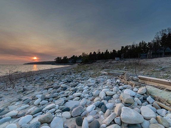 This is a unique opportunity to own a large water front parcel in the City of Harbor Springs. 280 feet of fabulous sandy beach accessed by a private road. A wonderfully large estate sized site to build the house of your dreams. The existing 1930's vintage summer cottage has lots of charm and character. A wonderful beach house until you are ready build a year round home...