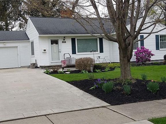 WOW.. Well maintained and updated for last 15yrs. by current owner. 2-Bdrms with good size closets, 1-full bath, Living Room with woodburning fireplace and built in bookcase. Open Floor Plan Kitchen/Dining area. Updates include: Stamped Concrete Driveway and Front Walkway, 2022 Bathroom Remodel, 2021 40-Gallon Water Heater, 2012-Glass Block Basement Windows, , 2009-Goodman Furnace, 2009 Whirlpool Refrigerator, 2008 Kenmore Stove, High Speed Green Light Internet available. PURCHASE OFFERS TO BE RECEIVED NO LATER THAN NOON ON 5/5. DELAYED NEGOTIATIONS UNTIL THURSDAY 5/5 at 2PM. Will need 24hrs for response. NOTE: Deduct from listed True Taxes $741.00 for Basic Star Deduction. Rear property line borders public Pittsford Trail.