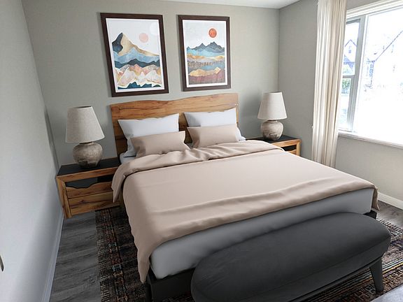 Big bright windowsStunning tile backsplashPlenty of cabinet spaceLarge islandSpacious bathroomModern featuresWalk in shower