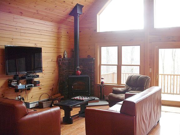 Turn-key Catskill log home was built in 2009 with attention to details, a terrific floor plan and a cozy wood stove for those winter days & nights. Bright rooms, high ceilings, gourmet kitchen and a fully furnished offering for you to enjoy NOW. Main floor has two bedrooms, a full bathroom and doors to the large deck. Second floor offers a generous master bedroom with an en suite full bathroom with beautiful tiles and tasteful fixtures. Skylights for all of that natural light, ample closets and a sitting area to enjoy a good book or just to take a little nap. Full walkout basement is just waiting to be finished into a game room, media room, workshop or perhaps add a bonus room for your guests to stay in, options for sure. Loving the mountain views from the deck, the quiet of the woods and the private setting that screams Catskill LOVE! Property is located close to SKI, GOLF, Lake Wawaka for some kayaking fun, minutes to Villages for shopping, dinning, galleries and a short drive to the Pepacton reservoir for more water recreation. 2 ½ HOURS FROM THE GWB for the perfect get away in the Heart of the Catskills!