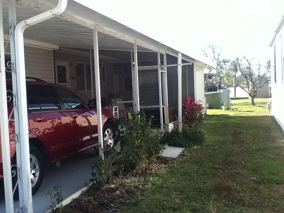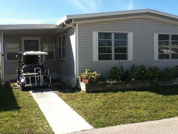 This home is an age qualified 55+ in the pet friendly Colony Cove. This is a turnkey property. This home features two bedrooms, two bathrooms and a screened in lanai. This home boasts and open concept for the living and dining areas. There is a also a bonus sun room off of the living room. There are new laminate floors in the kitchen and living room areas! The A/C was replaced in 2015. In addition to the home, you can also purchase a golf cart for an additional $1000. This property is located on a quiet street and has a lot of potential! The lot rent on this home is estimated to be $ 741.22 per month. it covers everything except electricity, cable.Your water, sewer, trash pickup twice a week, recycling, all property taxes and lawn maintenance are included along with all these amenities. The park is pet friendly. Offering 4 clubhouses, 5 heated pools, a riverfront pavilion with a fishing pier, marina, pool tables, libraries, bingo, dances, Cruise ship style shows, dog park, tennis courts, shuffleboard, new pickle ball courts, horseshoe pits, woodworking shop, 2 fitness rooms, over 75 different clubs, 24 hour patrol and free community bus that goes to the beach, all of the malls and many other locations. The Cove offers so much more.
