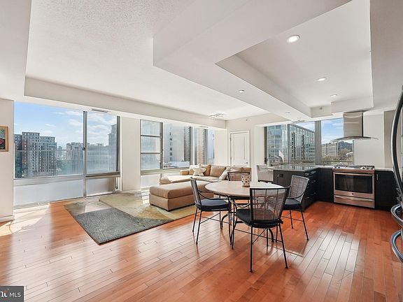 Welcome to your new urban sanctuary at 475 K Street NW, Unit 516, Washington, DC – a cleverly renovated corner unit at the ever-popular K at City Vista! This 2-bedroom, 2-bathroom haven is not just a home, it's a lifestyle. With 1,205 square feet of stylish living space, this is one of the largest units in the building, offering all the room you need to live your best life. And guess what? Your very own separately deeded parking space is right next to the elevator – talk about prime real estate for your car! Step inside and be dazzled by the flood of natural light pouring through floor-to-ceiling windows. The renovated and reconfigured kitchen is a showstopper, with its stunning quartz countertops, glass backsplash, and custom cabinetry. The drop-down ceiling with recessed LED lighting sets the perfect mood for culinary adventures. Outfitted with LG appliances, including a gas stove, microwave drawer, and a refrigerator/freezer with a built-in exterior water dispenser, this kitchen is a chef's dream. The renovation also includes under cabinet lights, under cabinet outlets, Silgranit sink by Blanco American, double trash can, spice storage, lazy susan, pantry with pull-out drawers, an appliance garage, hidden storage, extra outlets and the addition of the peninsula for 4. This renovated space is as functional as it is beautiful. And for coffee aficionados, the Keurig coffee maker with a permanent filtered water connection is the cherry on top. Entertaining is effortless with your very own beverage center featuring an under-counter wine refrigerator and custom drawers equipped with outlets for all your gadgets. Both bathrooms have been completely renovated. Each bathroom has custom tile work including penny tile on floors and storage cubbies in the showers, quartz countertops, custom cabinetry with ample storage, built-in vanity mirrors and overhead lighting, built-in medicine cabinets, recessed lighting and ample hooks & towel bars, which are so often overlooked. Storage? You’ve got it! From walk-in closets to custom cabinetry, every inch of this home is designed to maximize convenience. The unit has 3 walk-in closets and the washer/dryer are conveniently hidden out of sight in a closet. In the primary bedroom the fan has been replaced, is on a remote, more lighting and outlets added, and the dining room light has been replaced. And as an added bonus, this unit has 2 heating/cooling zones with a thermostat in each bedroom so you can perfectly heat/cool as you like! The K City Vista is a professionally managed, amenity-rich, PET FRIENDLY building that offers a 24-hour front desk, clubroom, lounge, private courtyard, and a stunning roof deck complete with a heated pool. With a plethora of cafes, restaurants, grocery stores, and a gym nearby, your urban lifestyle is fully supported. Plus, you're just a short distance from the high-end retail therapy at CityCenter. Ready to make this urban oasis your own? Come see it for yourself and fall in love with everything it has to offer!